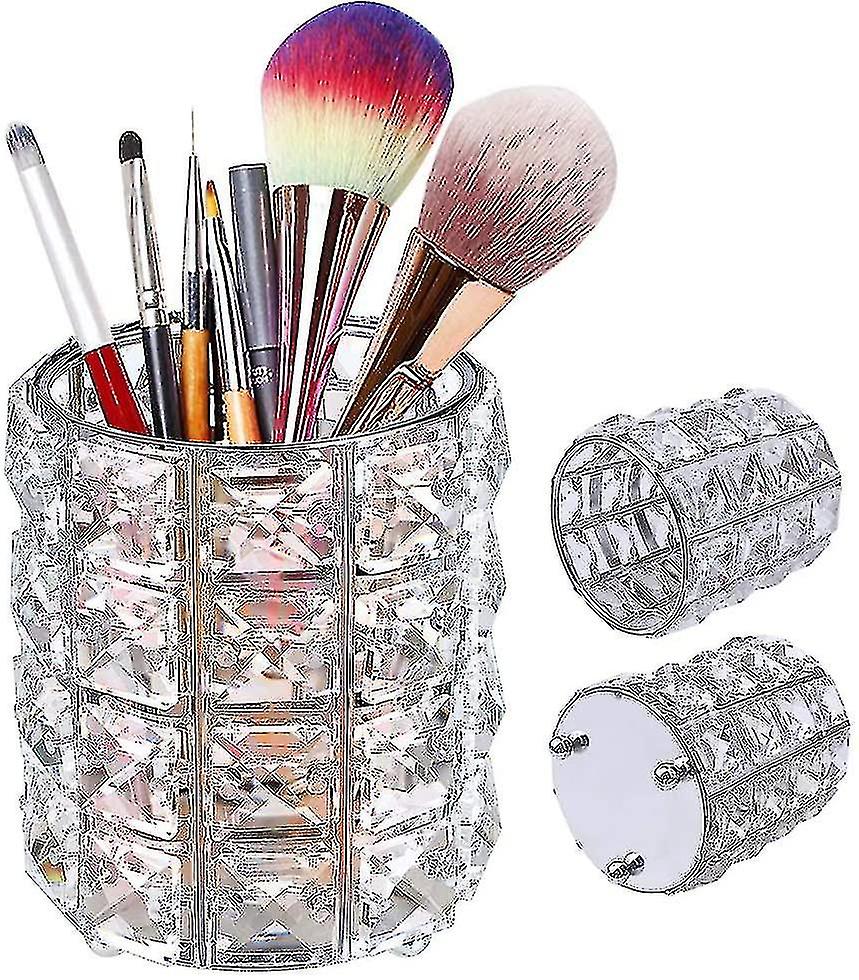Stylish Crystal Makeup Brush Pot: Silver metal and sparkly crystal embellishment, design with the simple and elegant design, stylish and attractive outlooks. Great decorations on your desk, counter or tabletop. Nice cosmetic organiser for fashion and beauty lovers. .