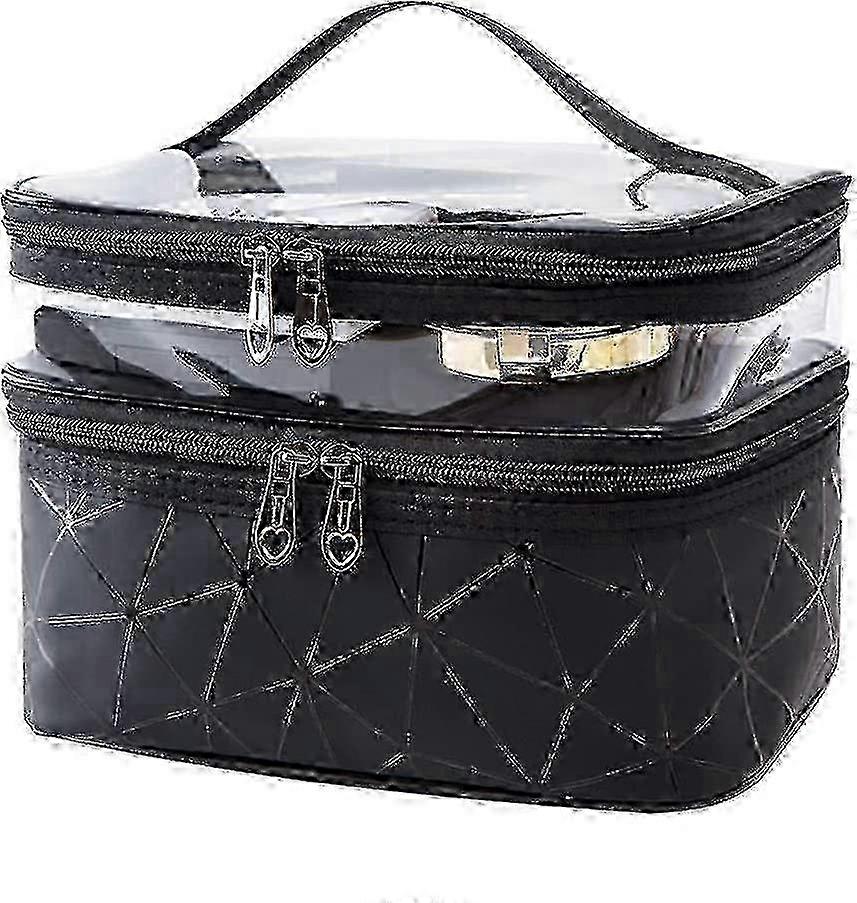 Makeup Bags Double Layer Travel Cosmetic Cases Waterproof Large Capacity Toiletry Bag Make f26 High Quality Material: The Makeup Bag Is Made of Transparent Pvc In The First Layer and Pu Waterproof Fabric In The Second Layer. It Is Soft, Easy to Clean and Protect Your Personal Belongings from Moisture and Bacteria .Double Layer Organizer: Layered Design Makes It Easier for You to Sort and Store. The Double Deck Cosmetic Bag Has Two Large Independent Storage Spaces, with Enough Space to Store Your Cosmetics, Make-Up tools, Jewelry and Travel Supplies .Fashionable and Multifunctional: The Make Up Case Can Not Only Be Used As Make-Up Bag, But Also As Travel Storage Bag, Washing Bag and Storage Bag. It Is Suitable for All Kinds of Daily Life and Will Bring Great Convenience to Your Life .Unique Design: Specially Designed Elastic Bandage and Make-Up Bag Handle, Which Can Store Makeup Brush and Can Be Carried By Hand. The First Layer of Cosmetic Bag Adopts Transparent Visual Design, Which Can Clearly See What Is Stored In It. High Quality Smooth Zipper Provides The Best User Experience and Protects Your Small Valuables .24-Hour Service:The Cosmetic Case Are Made of High-Quality Pvc and Pu Materials. It Is Normal to Have A Little Smell. It Only Needs to Be Ventilated for Two Days. If You Have Any Questions About The Purchase and Use, Please Contact Us at Any Time, and We Will Solve The Problem within 24 Hours . Note: Due to the light and screen setting difference, the item's color may be slightly different from the pictures. Please allow slight dimension difference due to different manual measurement.