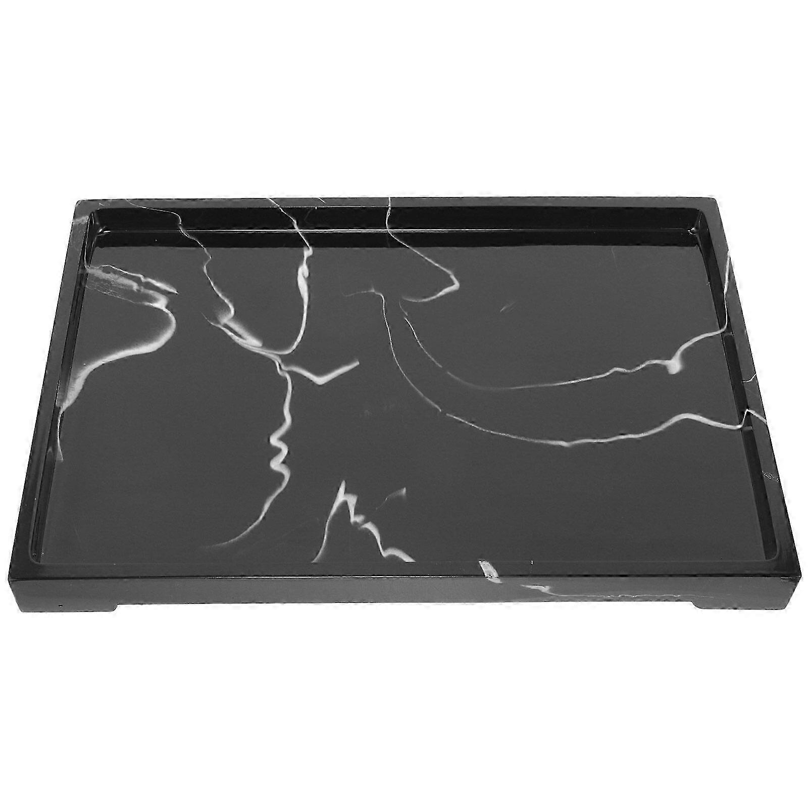 Resin Marble Bath Tray for Makeup Perfume Soap Organizer 29.6x20.5x2.1cm Black
