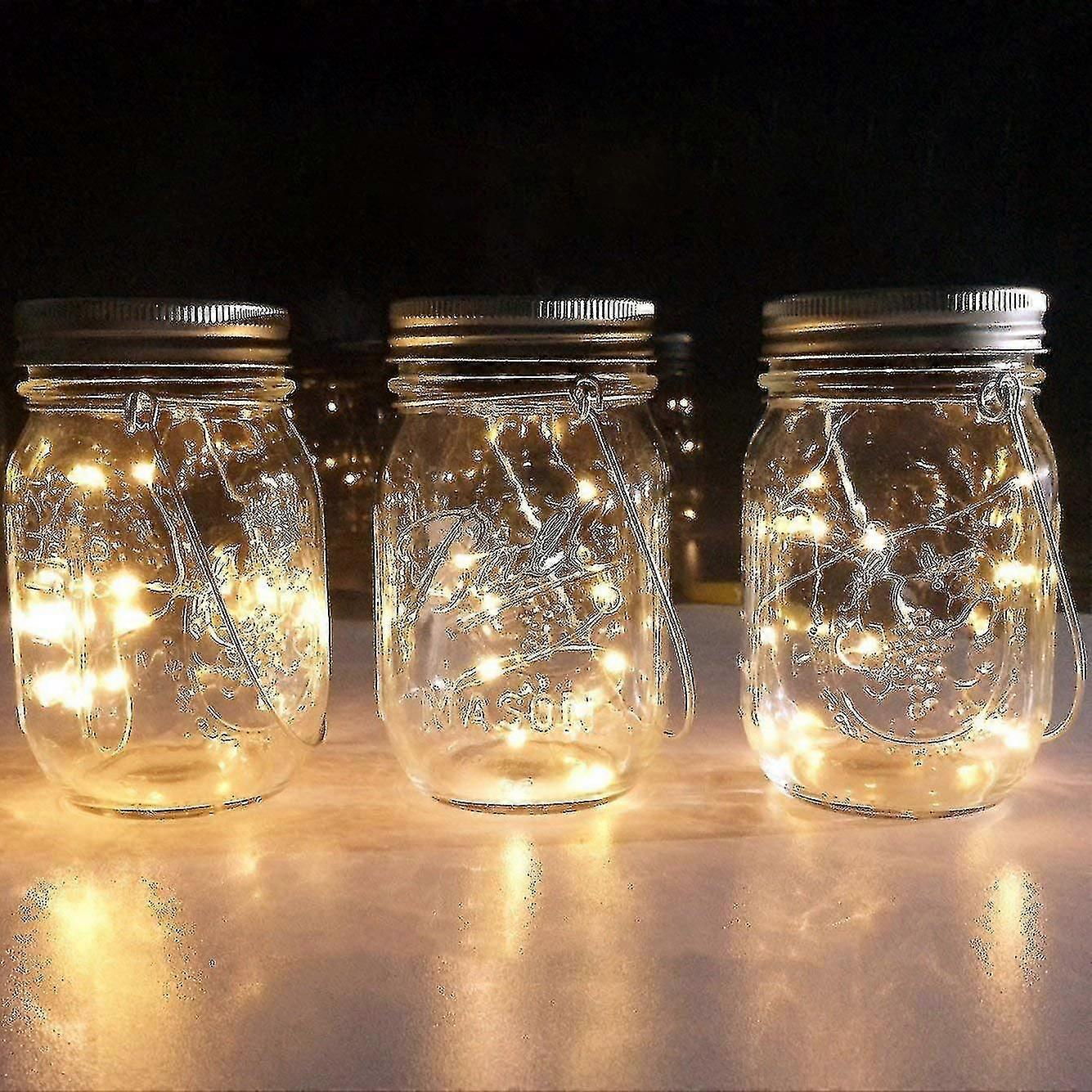 Mason Jar Solar Lantern Lights, 8 Pack with 10 LEDs, Fairy Star Firefly Solar Lids, 8 Hangers Included