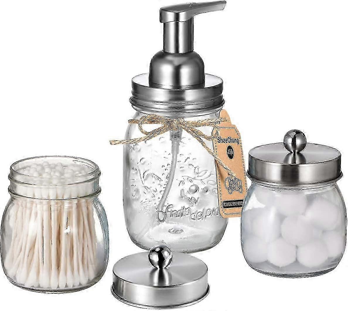 Mason Jar Bathroom Accessories Set - Includes Mason Jar Foaming Hand Soap Dispenser & Qtip Holder Set