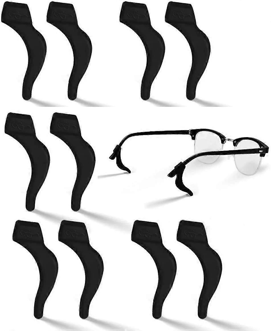 Glasses Anti-Slip Hook Soft Silicone Temple Mounts Comfortable Earmuffs Glasses Sunglass Sleeve Holder, 5 Pairs (Black)