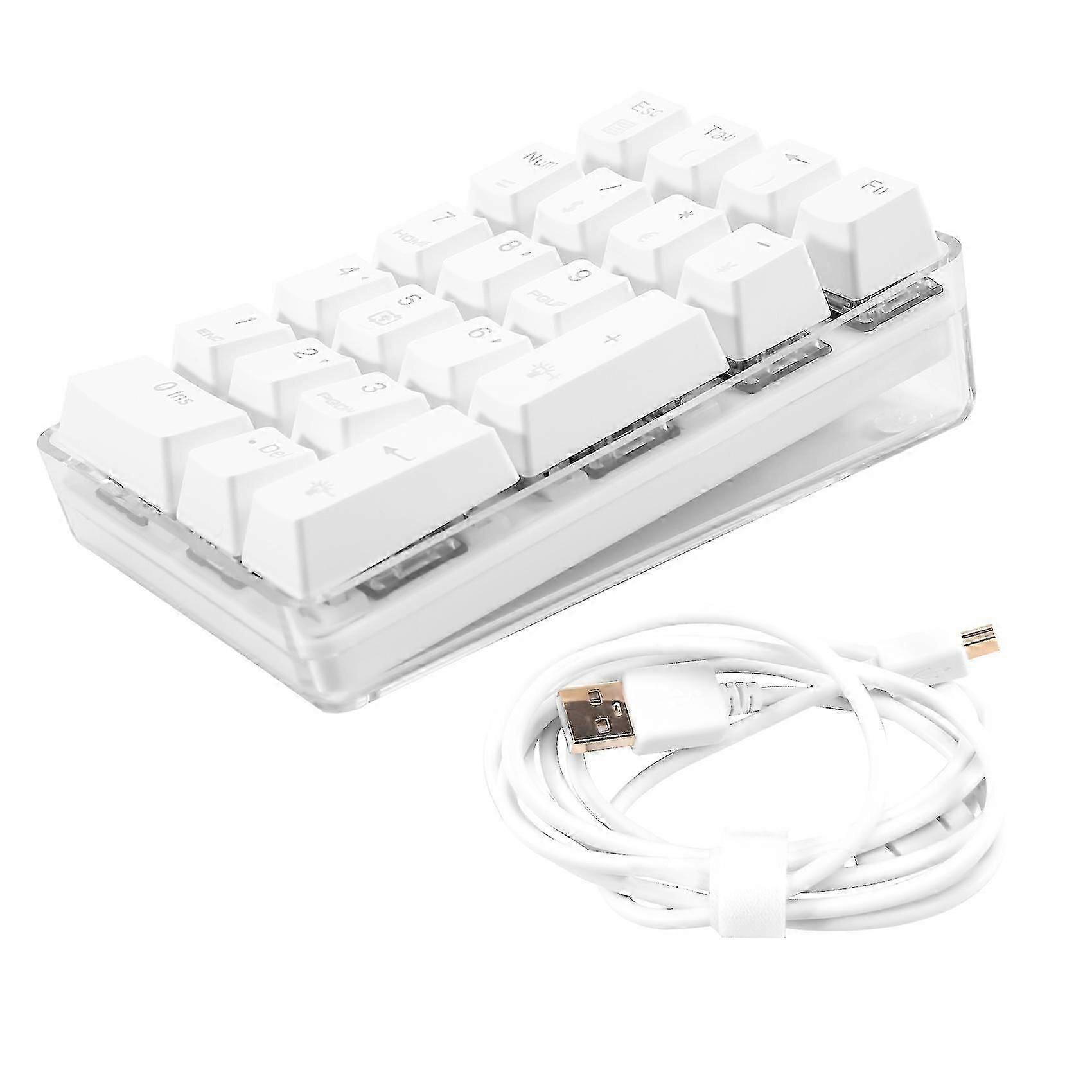 Mechanical Numeric Keypad Blue Switch Wired Gaming Keypad Crystal Case White Backlit 21 Mini Numpad