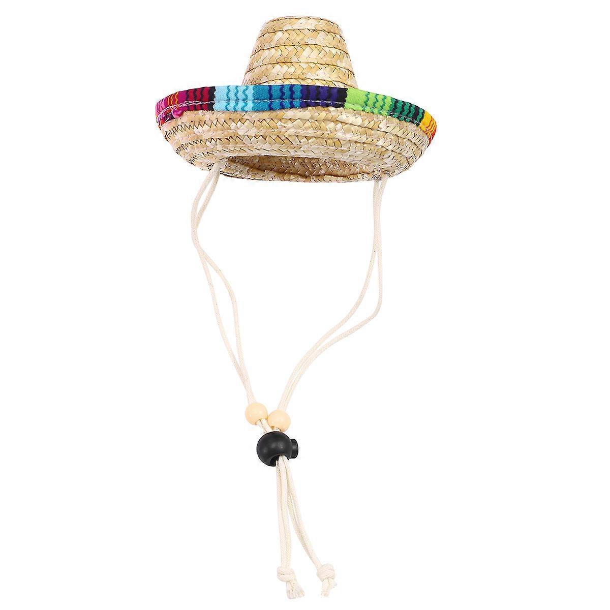 Mexican Poncho Straw Woven Hat Pet Cat Birthday Party Supplies Dog Birthday Hat Chihuahua Cosplay Clothes
