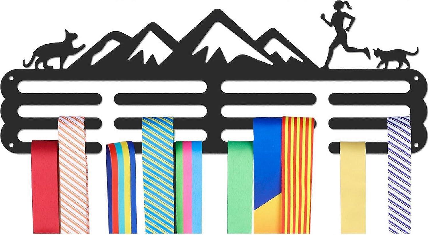 Medals Hanger Display Holder Rack Running Theme Medals Display Wall Mounted Frame Sports Medal Holder Hooks Ribbon Holder for Competition Medal Wall H