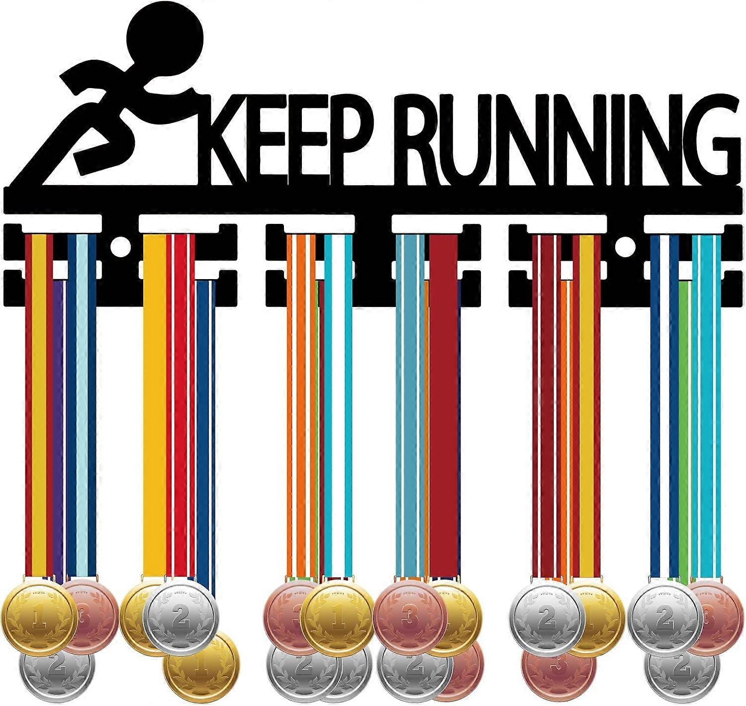 Keep Running Medal Rack Display Acrylic Medal Wall Hangers Sport Medal Holder Badge Ribbon Exhibition Holder Wall Mount Medal Hanger Hooks for Maratho