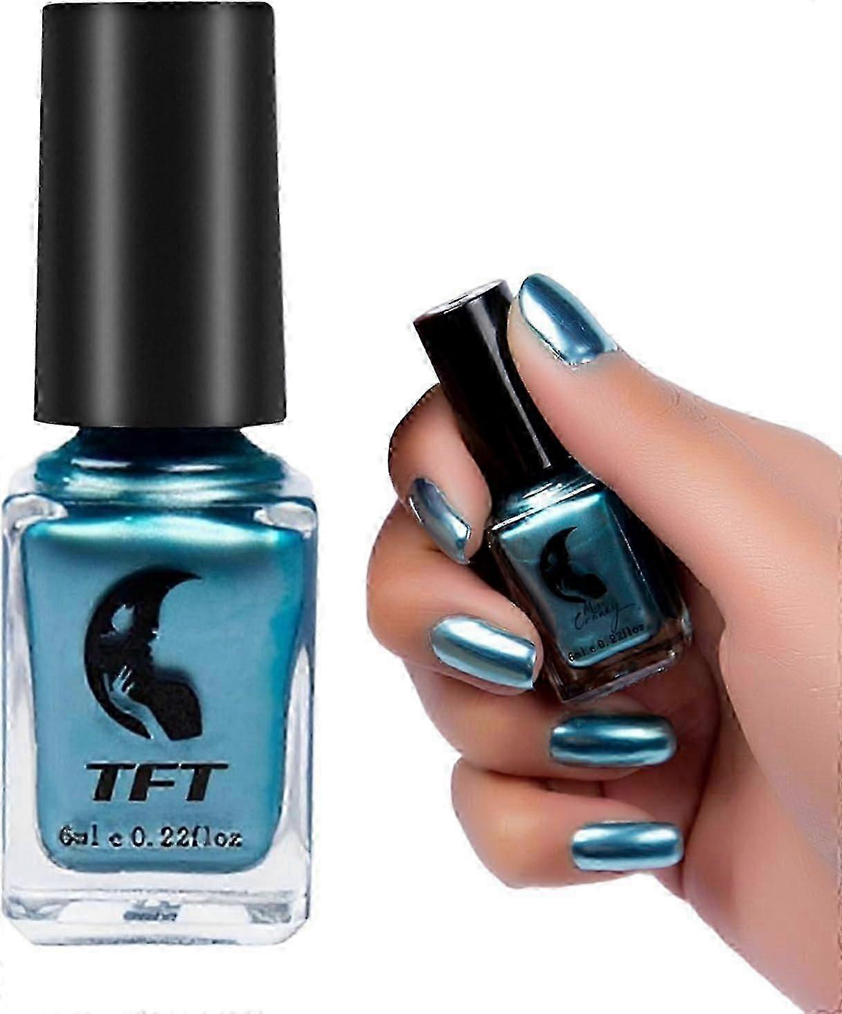 Metallic Blue Nail Polish, Quick Dry Mirror Effect, No UV Needed, Silver Plating Finish