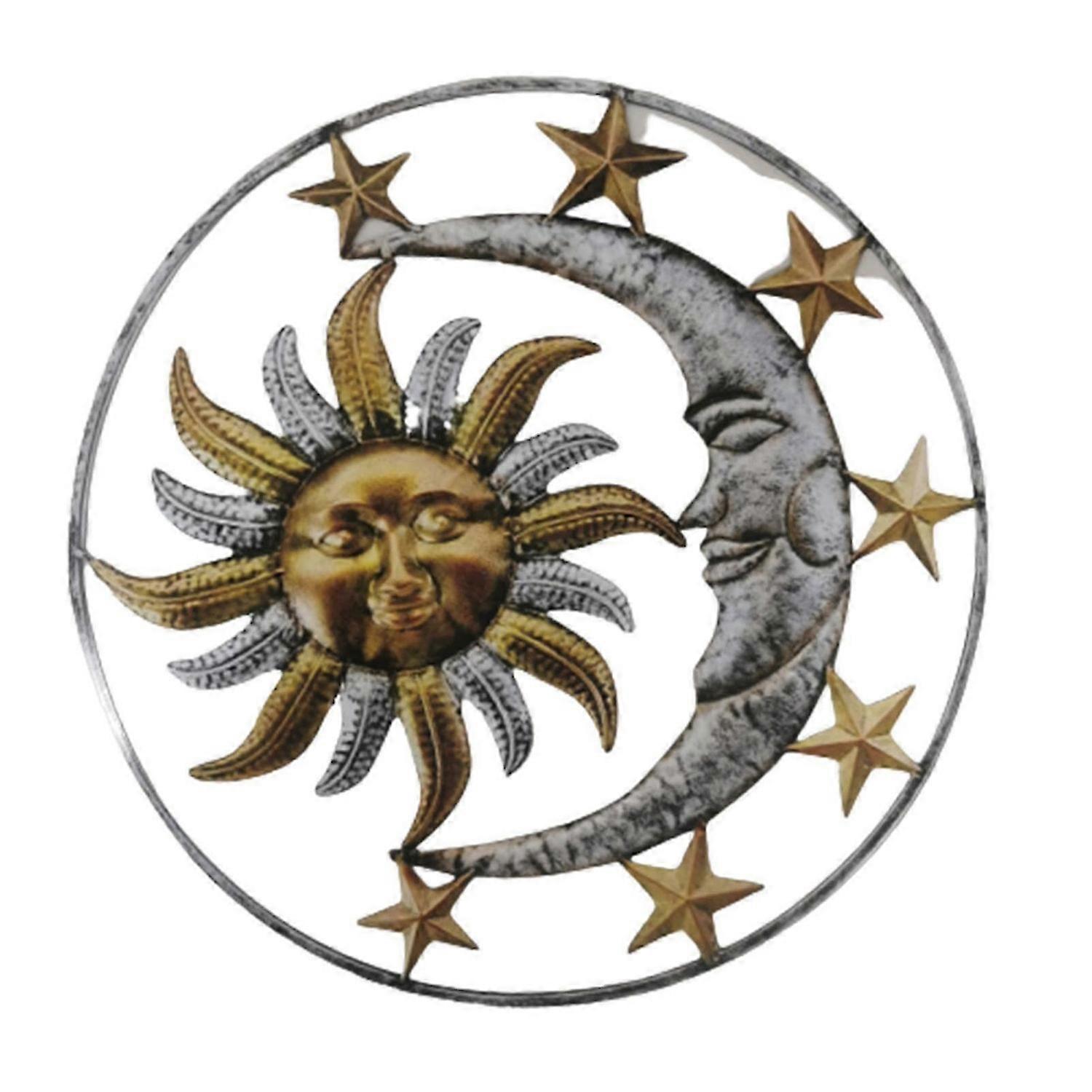 Metal Wall Art Decoration Creative Sun Moon Star Statue Hanging Ornament For Home