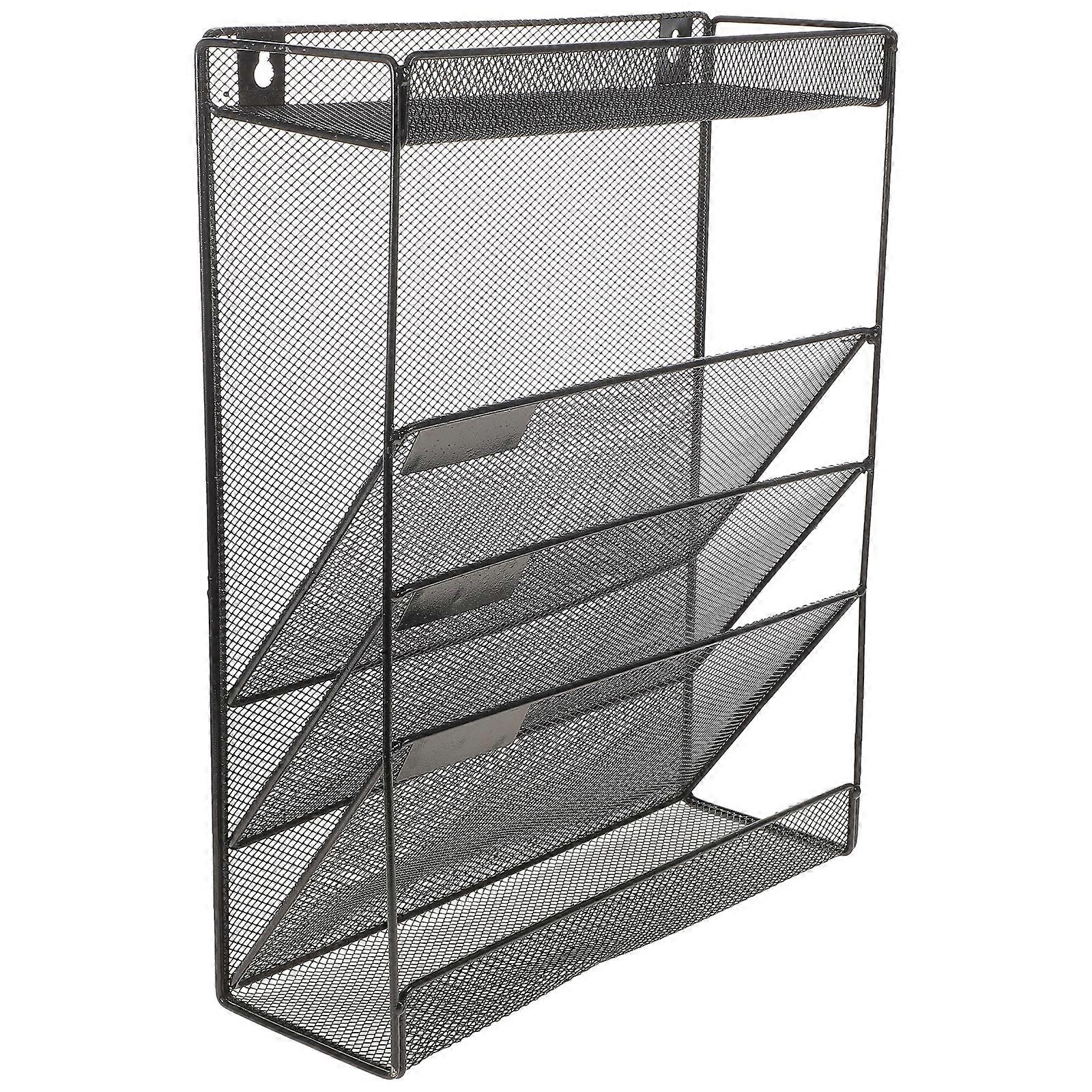 Metal Wall Rack Mesh Wall File Holder Office Magazine Rack with Hooks