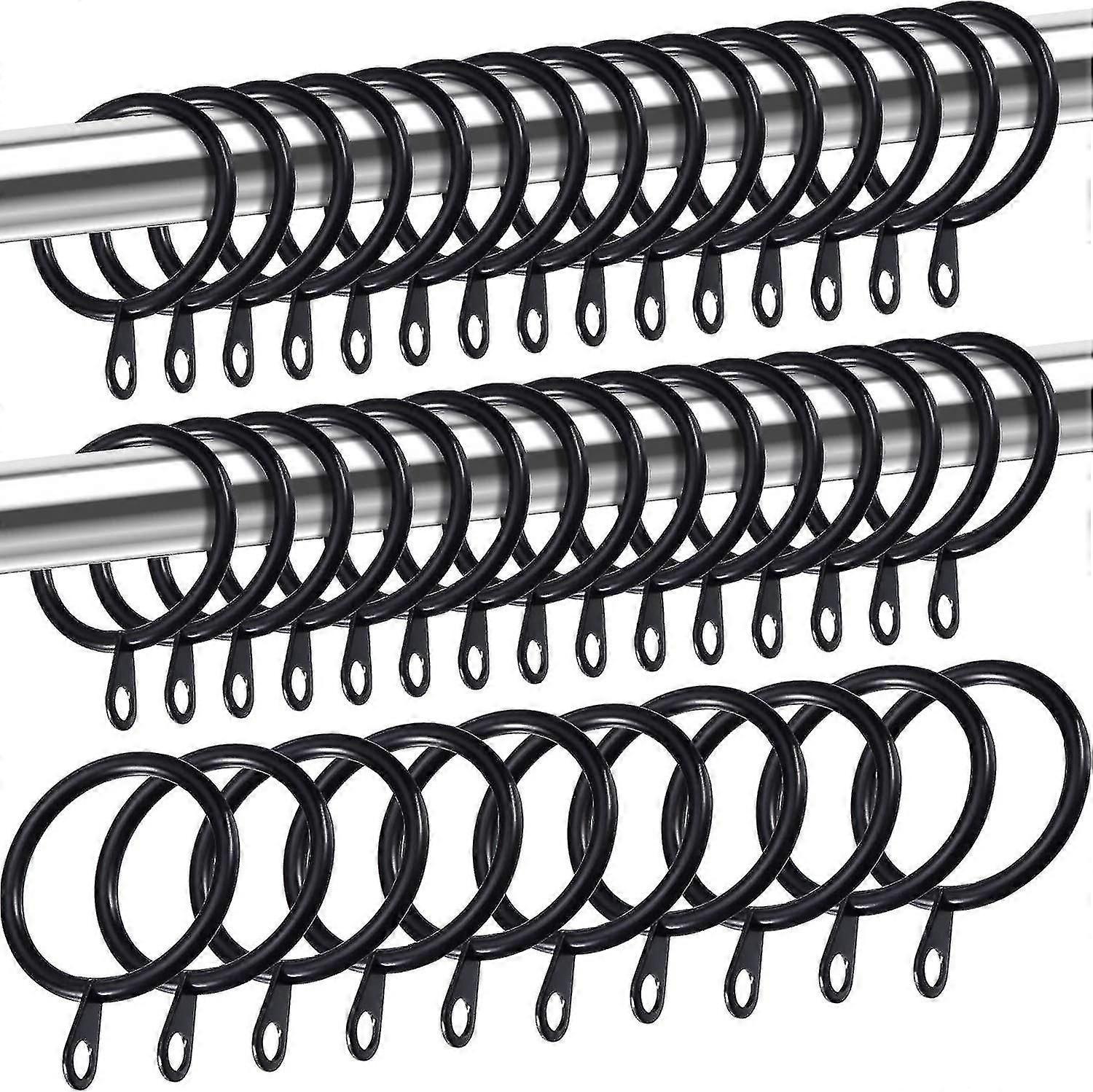 Metal Curtain Rings Heavy Duty Black Eyelet Rings for Curtain Rods, 30mm 40 Pack