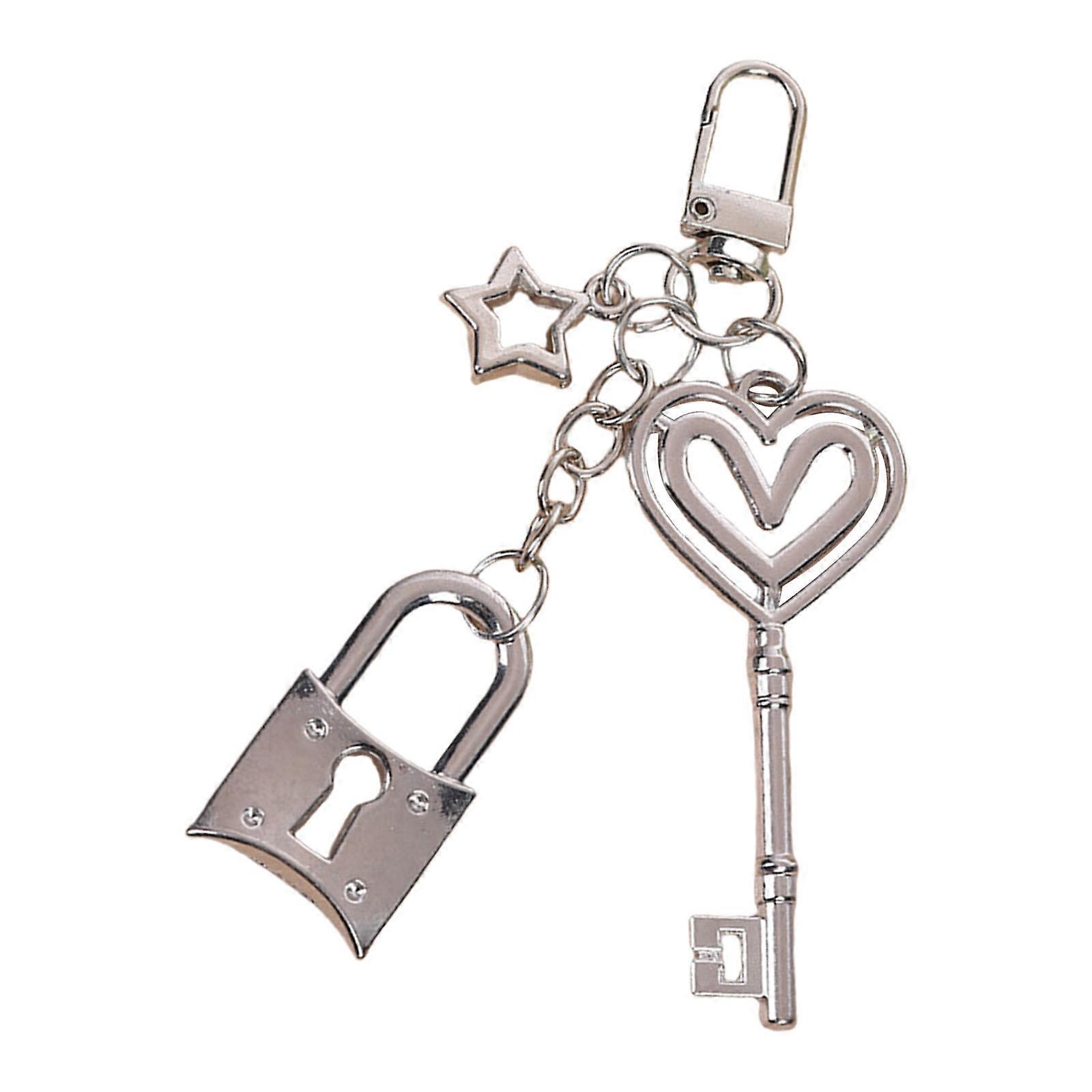 Metal Keychain Lovely Star Lock Keychain Creative Car Key Chain Heart Key Hanging Ornaments Keyrings Bag Charm for Woman