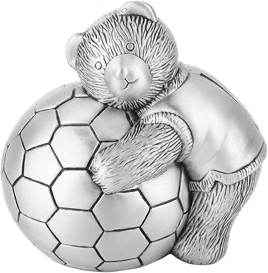 Metal Coin Bank, Little Bear with Football Piggy Bank Coin Saving Pot Home Decor Gift for Kids Boys Girls(1pc, silver)