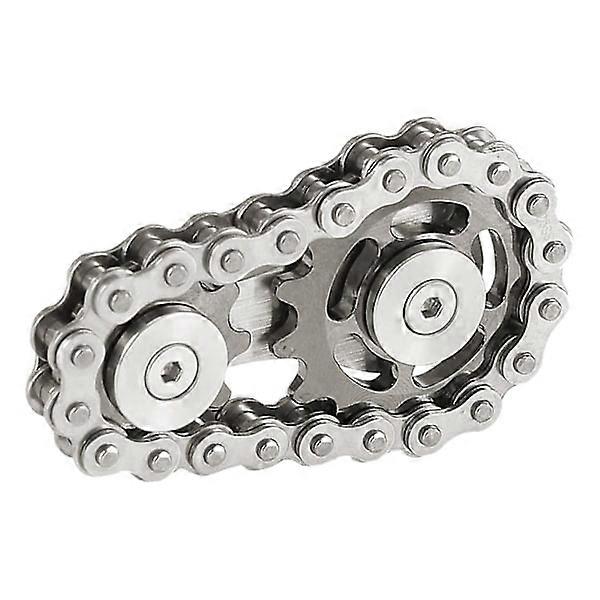 Metal Bike Chain Fidget Spinner, High Quality Stainless Steel, Novelty Game, 5 x 5 x 3 cm, Durable Gyro (Silver/Black)