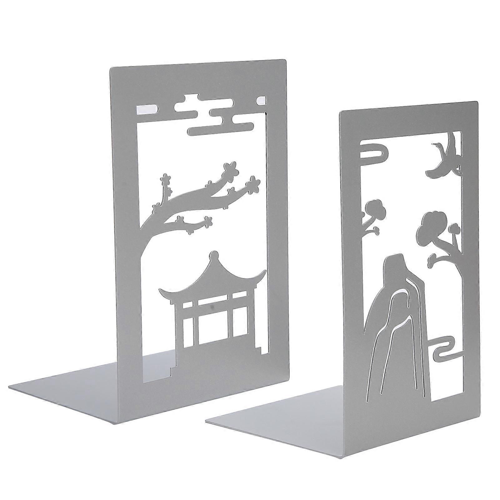 Metal Bookend AntiSlip Ancient Style Desktop Bookshelf Book Divider Craft Supplies(Pavilion Mountain )