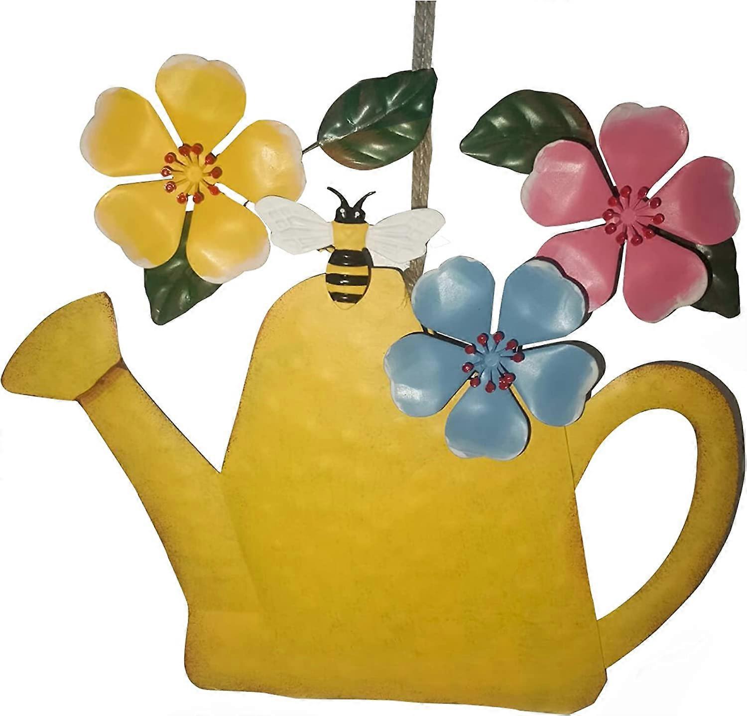 Metal Flower Garden Wall Decor - Wall Art Decoration Flower and Watering Can - Garden Fence Home Hanging Ornament Indoor Outdoor(1pcs, yellow)