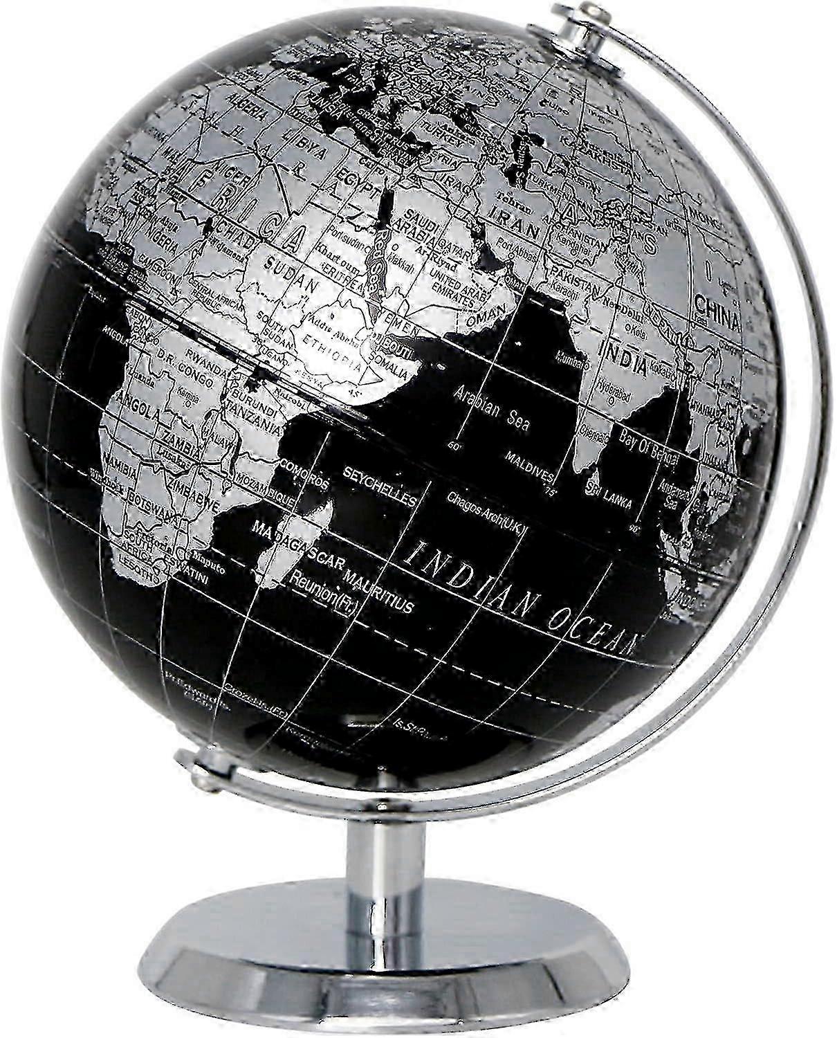 14cm Globe with Metal Base - Educational/Geographic/Modern Desktop Decor - Metallic Black