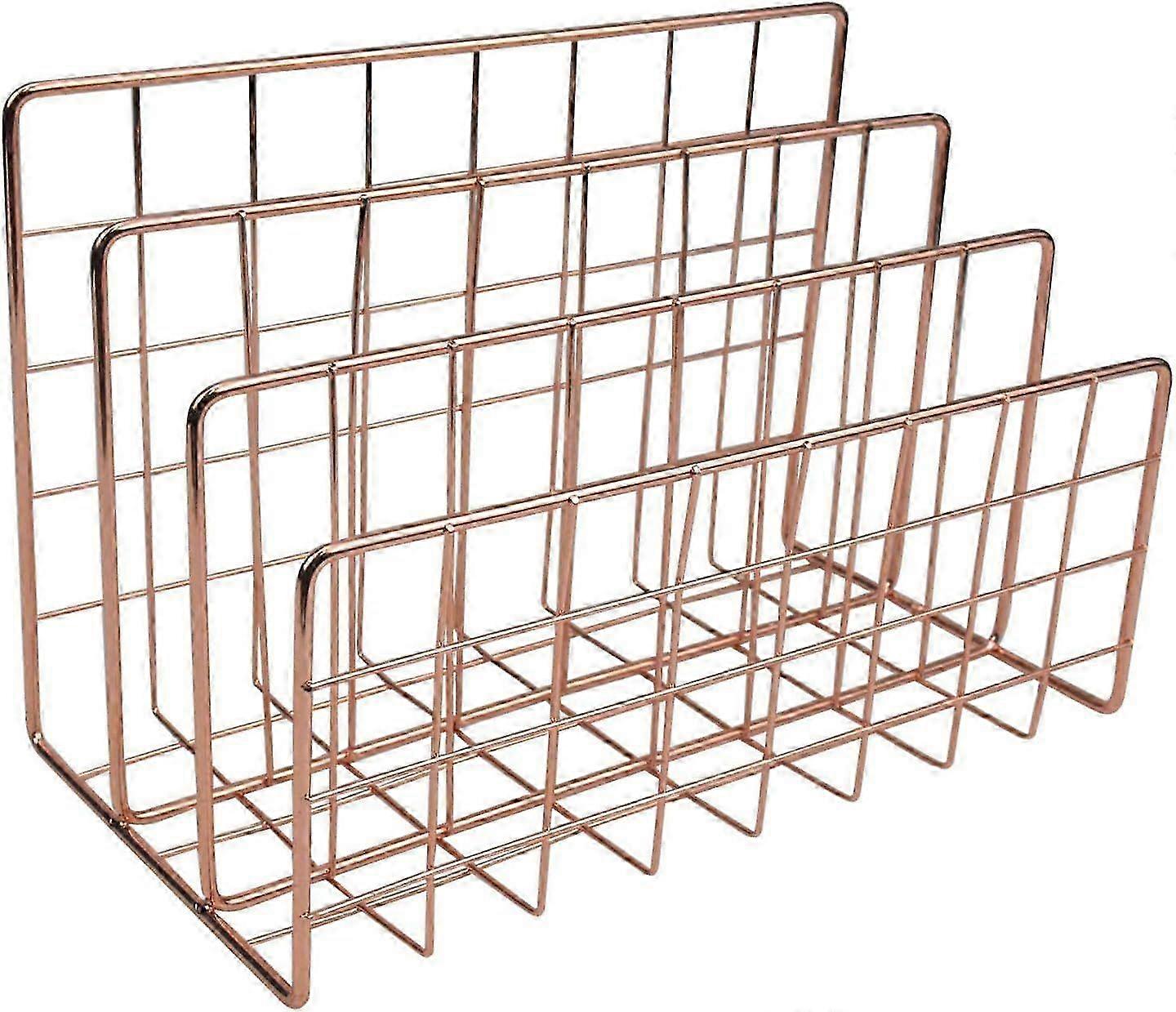 Metal Magazine Rack 3-Slot Iron Wire Organizer Rose Gold
