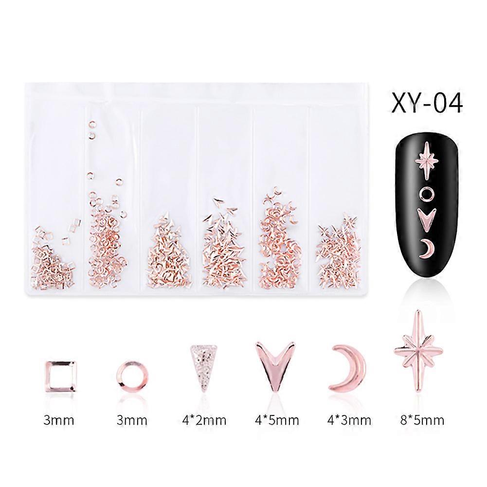 Metal Rivets Stud Pentagram Nail Art Decoration 6Grids Gold 16g 04#