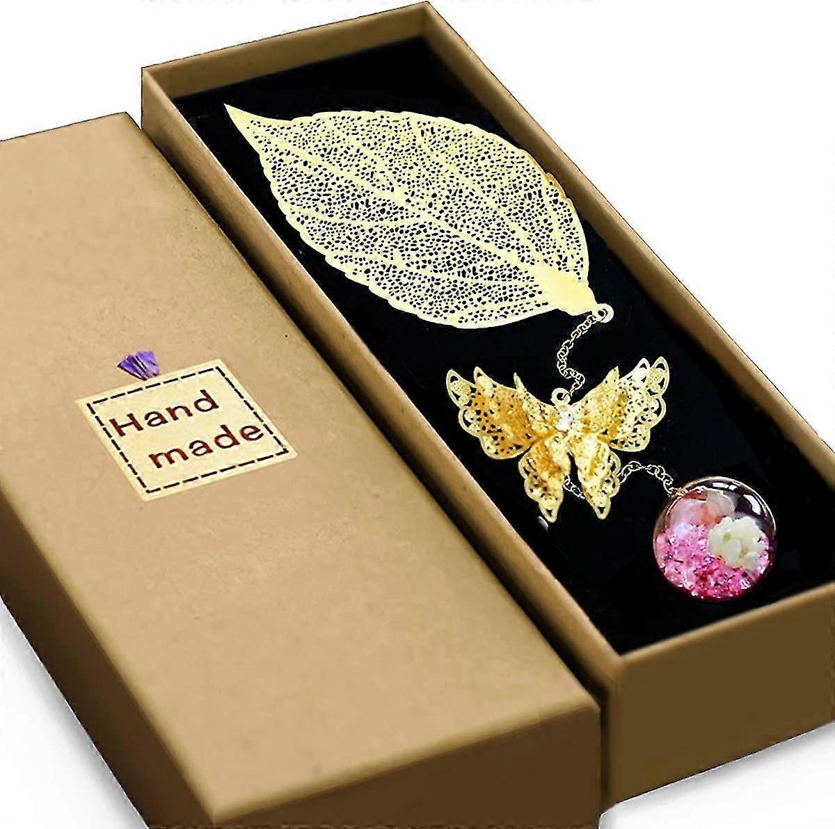 Gift Box Package- Each bookmark comes with exquisite gift box packaging,it's a unique gifts for teachers end of the year,graduation gifts for her,teacher appreciation gifts retirement gifts inspirational book marker,also ideal gifts for business office coworker birthday gifts Unique Design- Creative Handmade butterfly book marks,metal leaf with realistic 3D butterfly and dried flower bead pendant,the Lovely Lady's Read gift,that will be used and cherished forever Holiday Gifts- Spiritual book marks are great gifts for teachers women lady mom daughters readers girls librarian,kindergarten teacher Christmas gifts,Thanksgiving gifts,Mother's day gifts,Valentine's Day gifts Premium Material- Book markers Made of metal copper electroplated, light and durable, smoother and softer surface, protects your books from wear and tear Suitable Size Bookmark- Leaf dimensions 3.1X 1.5 inch,thick 0.01 inch, butterfly 1.4 X 1.1 inch, chain length 3.9 inch and perfect for most of the books