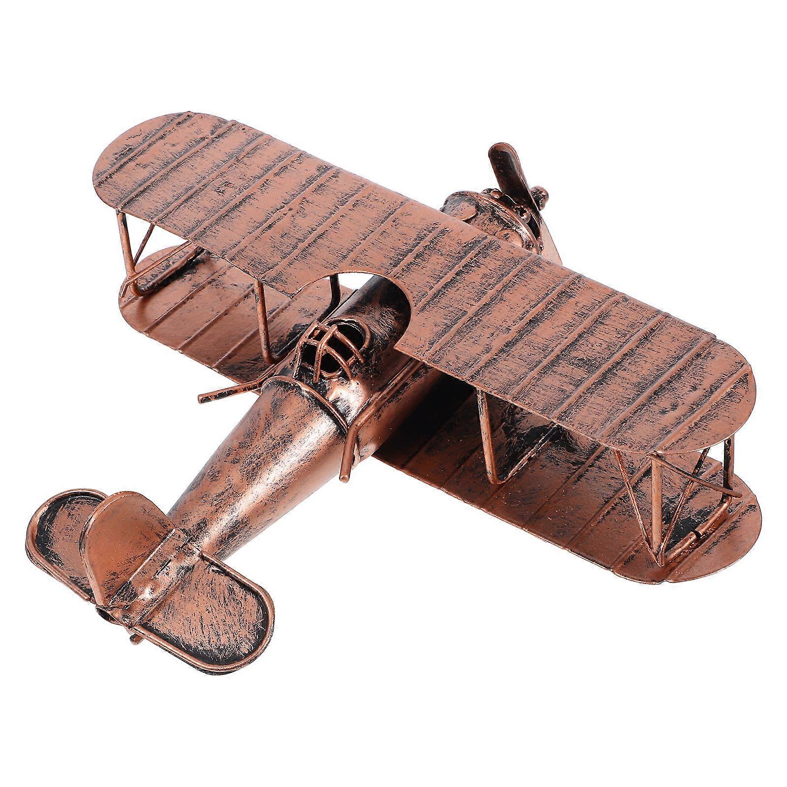 Metal Biplane Figurine Vintage Airplane Model Home Decor Keepsake Aged Bronze 1Pcs