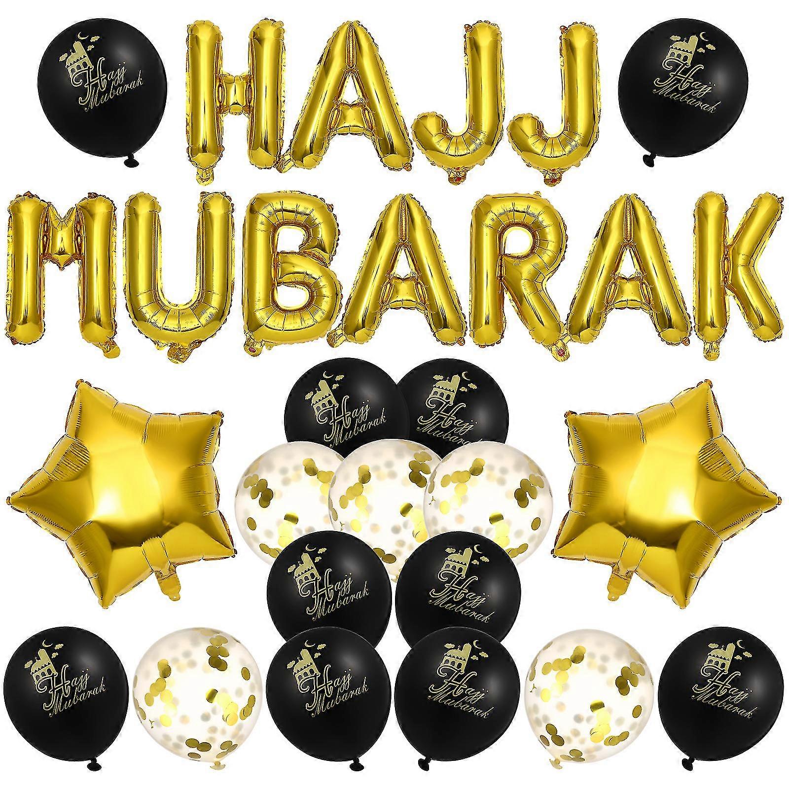HAJJ MUBARAK Letter Latex Balloons Decorative Celebrative Background Layout Balloons Set for Eid Al-Fitr (Black and Glod)