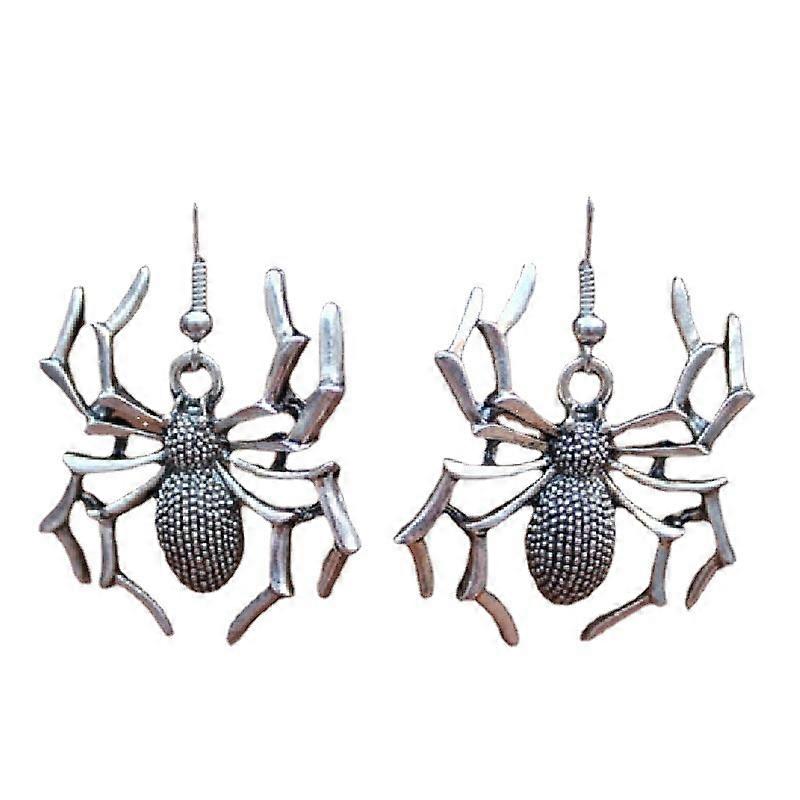 Plated Retro 3D Punk Big Spider Charm Tassel Drop Dangle Earrings(1 pair, silver)