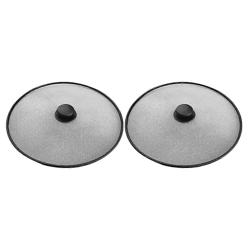 Stainless Steel Pot Lid with Mesh Cover Prevents Oil Splashes 2Pcs Black Kitchen Supply