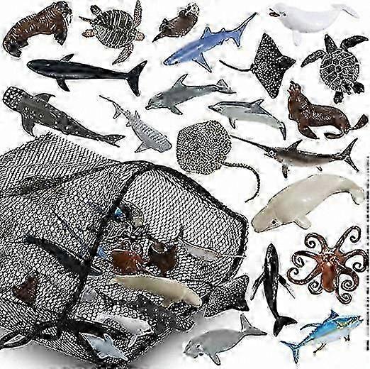 Ocean Animal Toys Set with Mesh Bag - 20 Pack Assorted Sea Creatures Including Sharks, Whales, Dolphins for Bath Time Fun and Ocean-Themed Parties