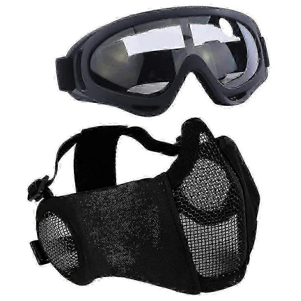 Airsoft Protective Kit With Mesh Half Mask And Earmuffs And Goggles - For Cs/hunting/paintball/shooting (black) from ZHENSENZHE SHOP