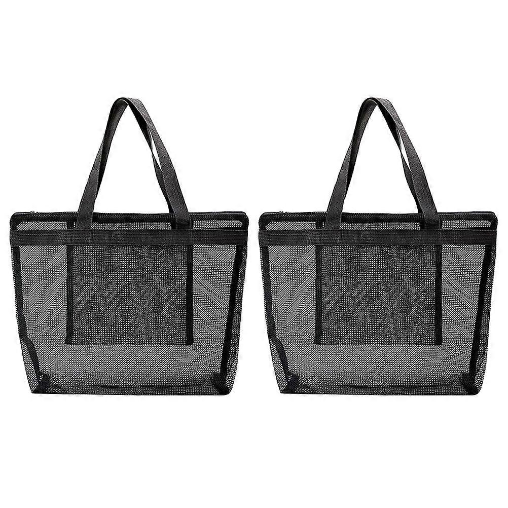 Mesh Beach Tote Bags Large Capacity Travel Gym Picnic Shopping Bag Set Lightweight Black Handheld Organizers for Toiletries Sunscreen Daily
