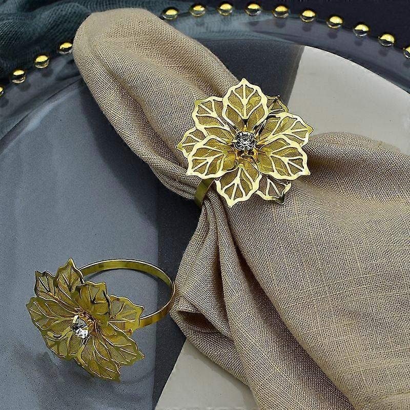 12pcs Mesh Flower Napkin Ring Buckle Hotel Restaurant Wedding Party Table Decor Golden