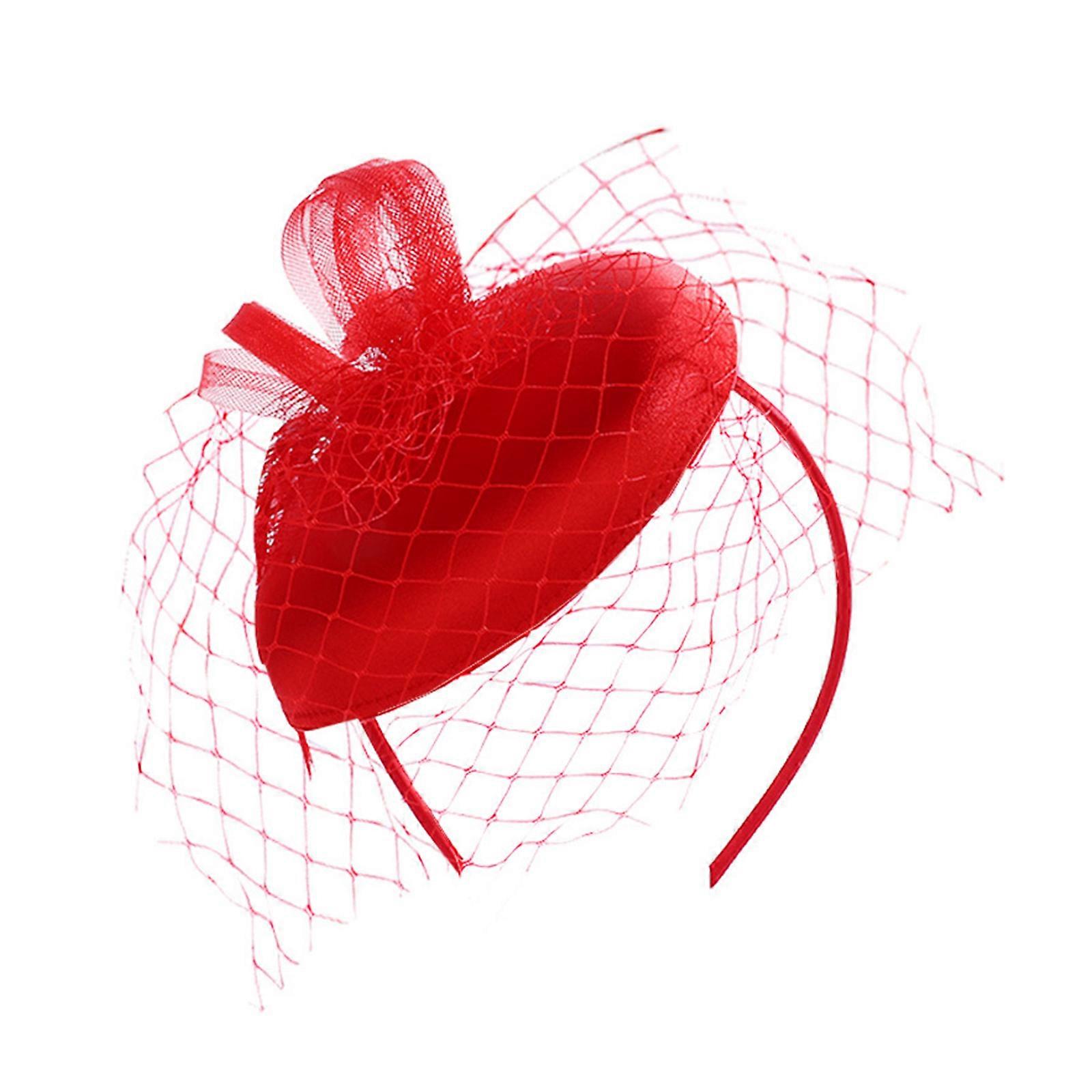 Teenagers Headband with Mesh Veil Top Hat Shape Hairband Colorful Headband for Taking Photo Hairbands for Woman Girl Red