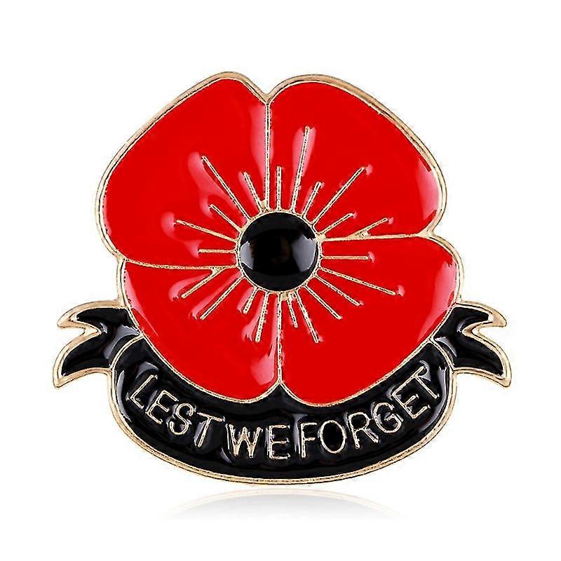 Remember Memorial Day Gift Red Black Poppy Brooch Pin Lest We Forget Lapel Pin
