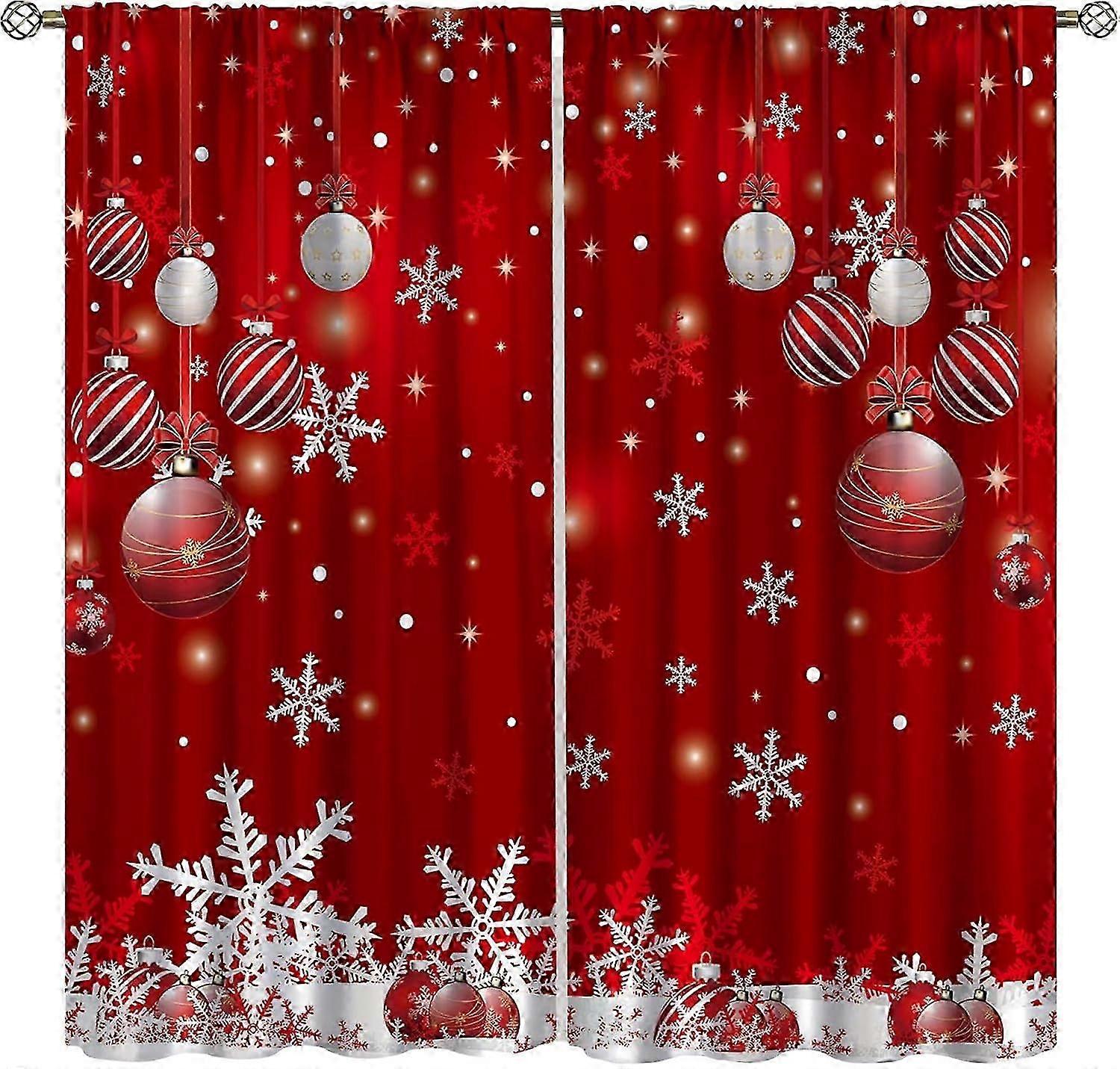Merry Christmas Curtains, Merry Xmas Glitter Snowflake Window Treatments for