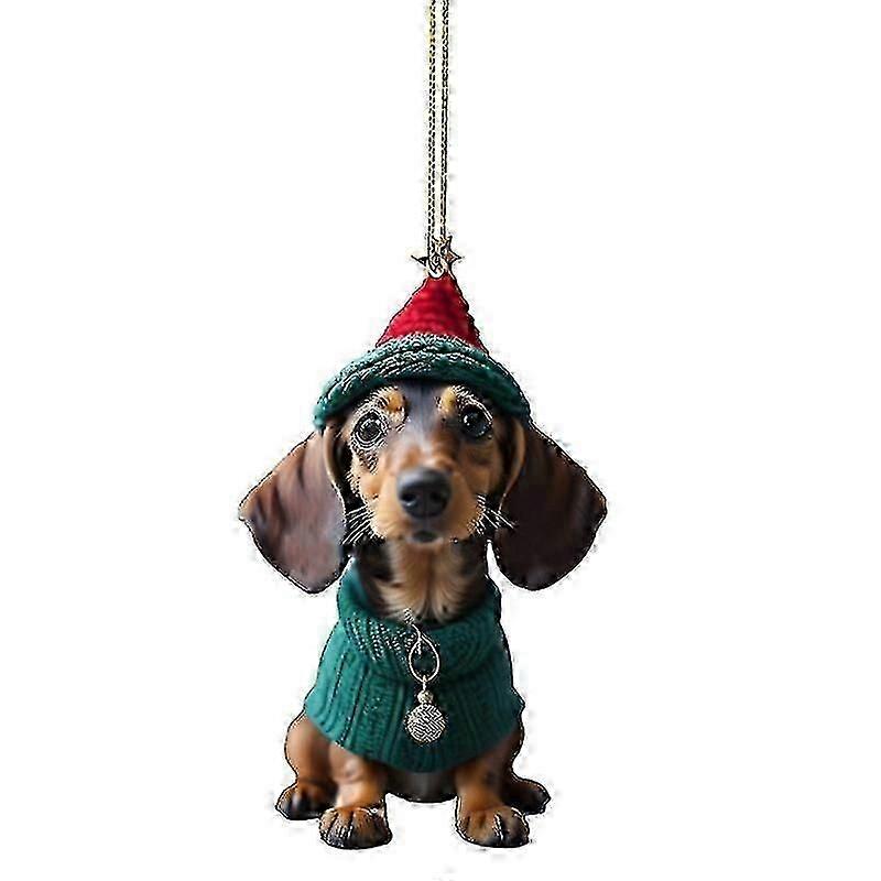 Merry Christmas Dachshund Pendant Ornament Xmas Tree Dog Hanging Decoration myi