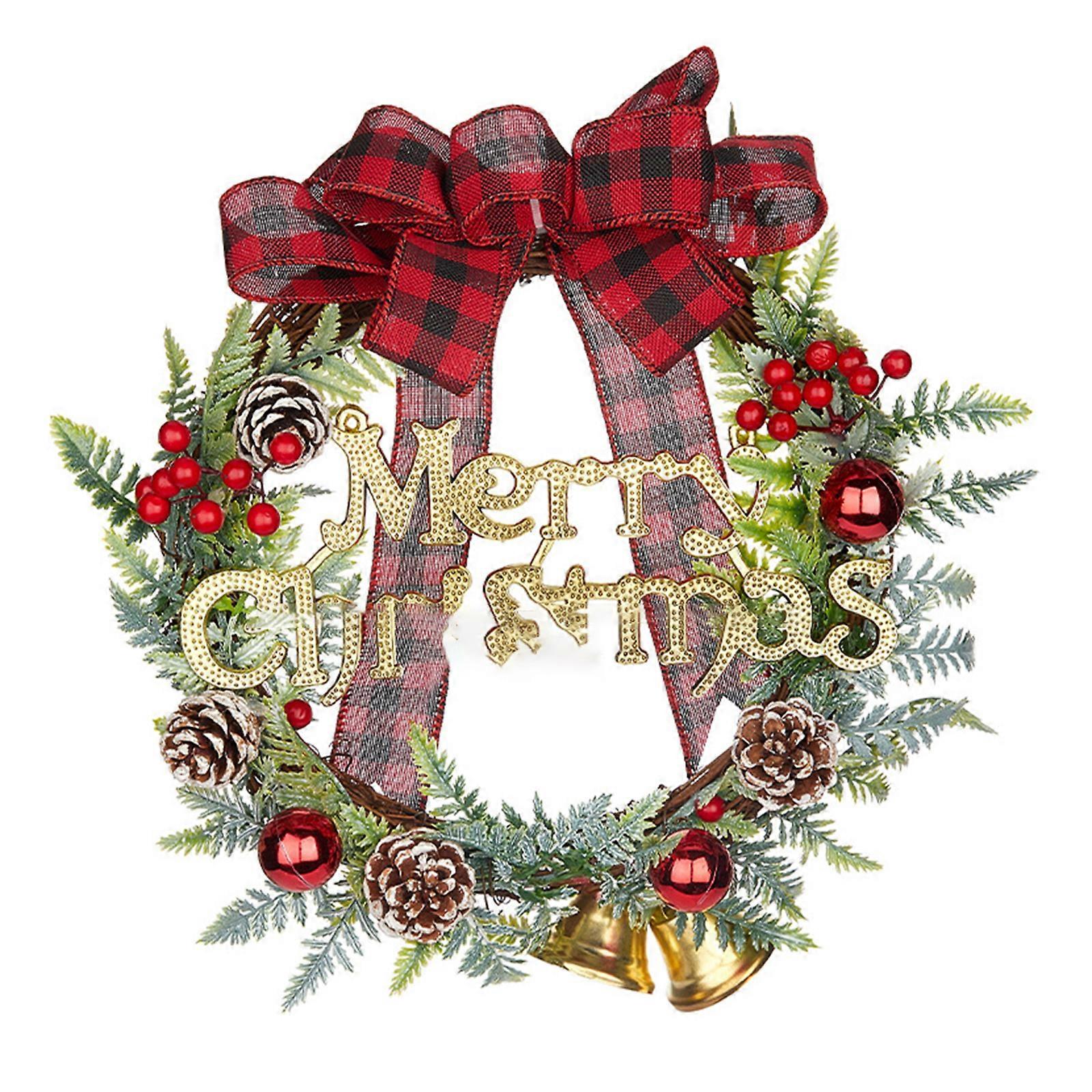 Merry Christmas Wreath Artificial Wreath with Pinecone, Winter Holiday Wreath for Front Door Hallway Porch Garden