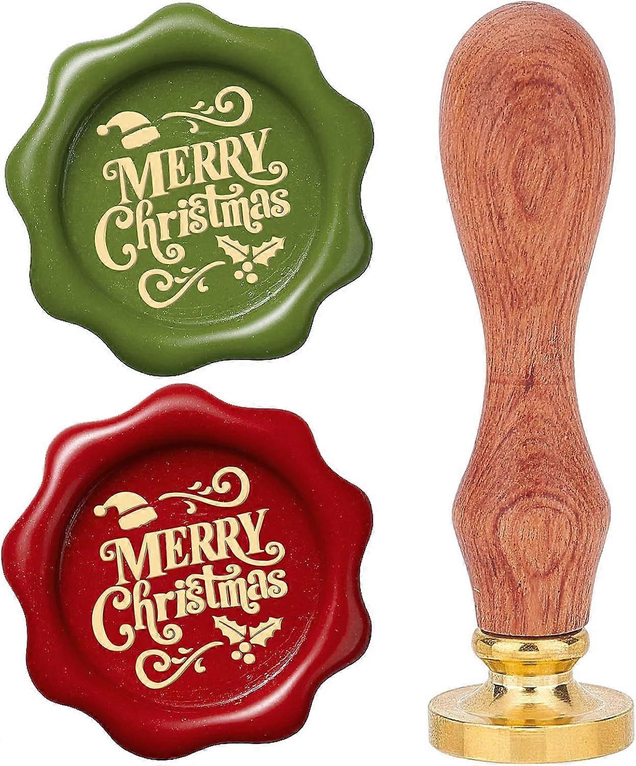 Merry Christmas Wax Seal Stamp 25mm Removable Brass Head Vintage X'MAS EVE Sealing Wax Stamp with Wooden Handle for Wedding Birthday Christmas Envelop