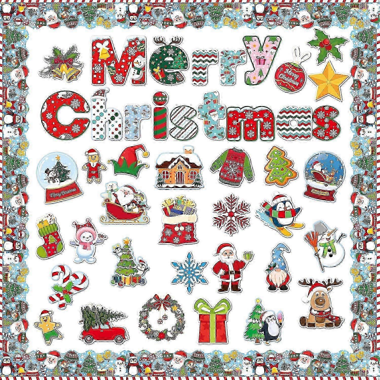 Merry Chritmas Bulletin Board Decoration Set, 83Pcs Christmas Cutouts for Bulletin Board Decor with Border Xmas Holiday Wall Decals