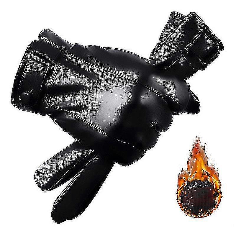 Set Of Men's Winter Cycling Plush Thick Windproof Waterproof Warm Touchscreen Leather Gloves