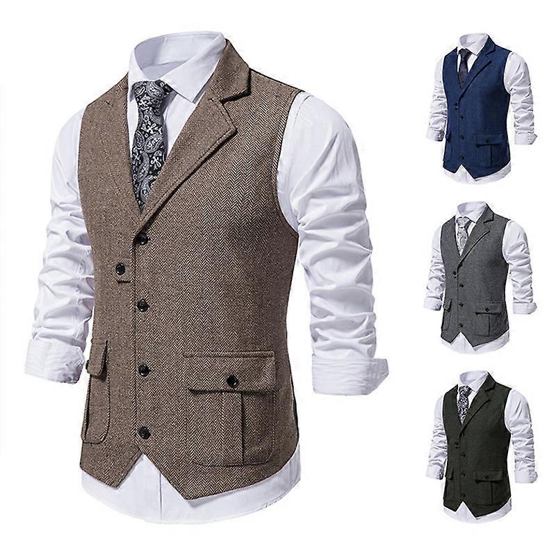 Mens Western Herringbone Suit Vest Tweed Slim Fit Vest
