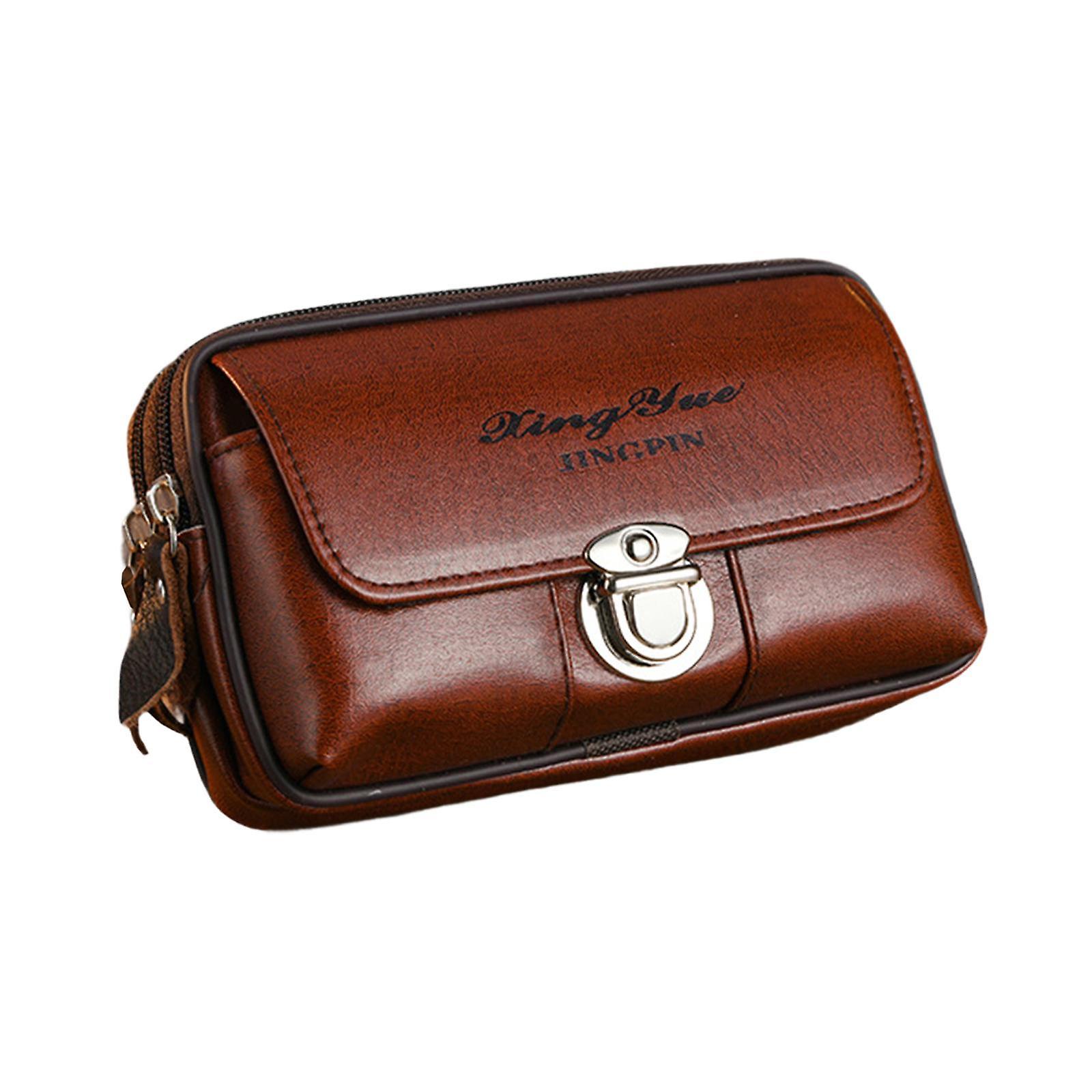 Men Waist Bag PU Leather Fashion Mobile Phone Bag for Camping Outdoor Travel