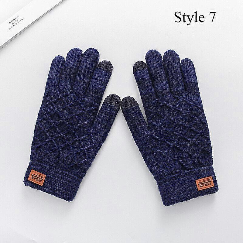 Men Wool Knit Thicken Elastic Gloves Touch Screen Warm Full Finger Mitten Riding