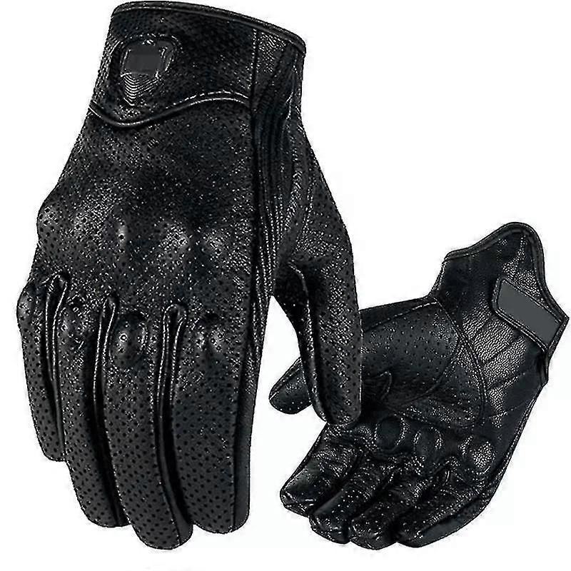 Men's Motorcycle Leather Perforated Cruiser Protective Gel Gloves Snowmobile Cycling Black L