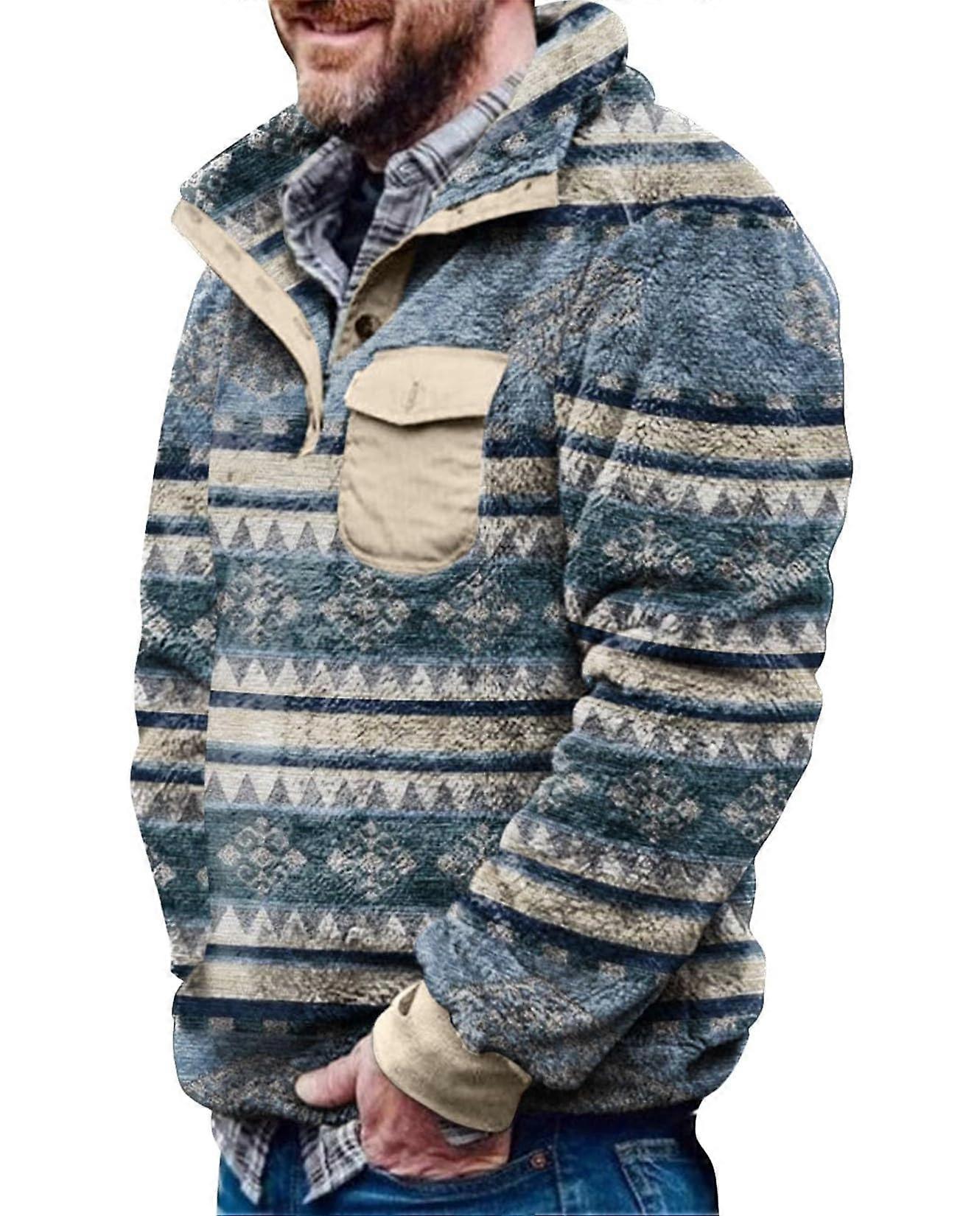 Western Sherpa Jacket for Mens Cowboy Fleece Fuzzy Pullover Coats Aztec Vintage Printed Button Down Sweaters Tops