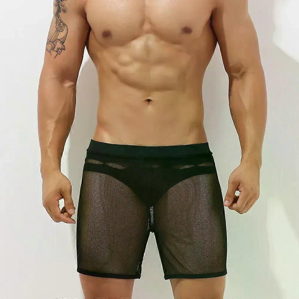 Men's Casual Shorts Youth Sexy Homewear Sleeping Pajams Summer Mesh Breathable Sports Boxer Gays Transparent Quick Dry Aro Pants