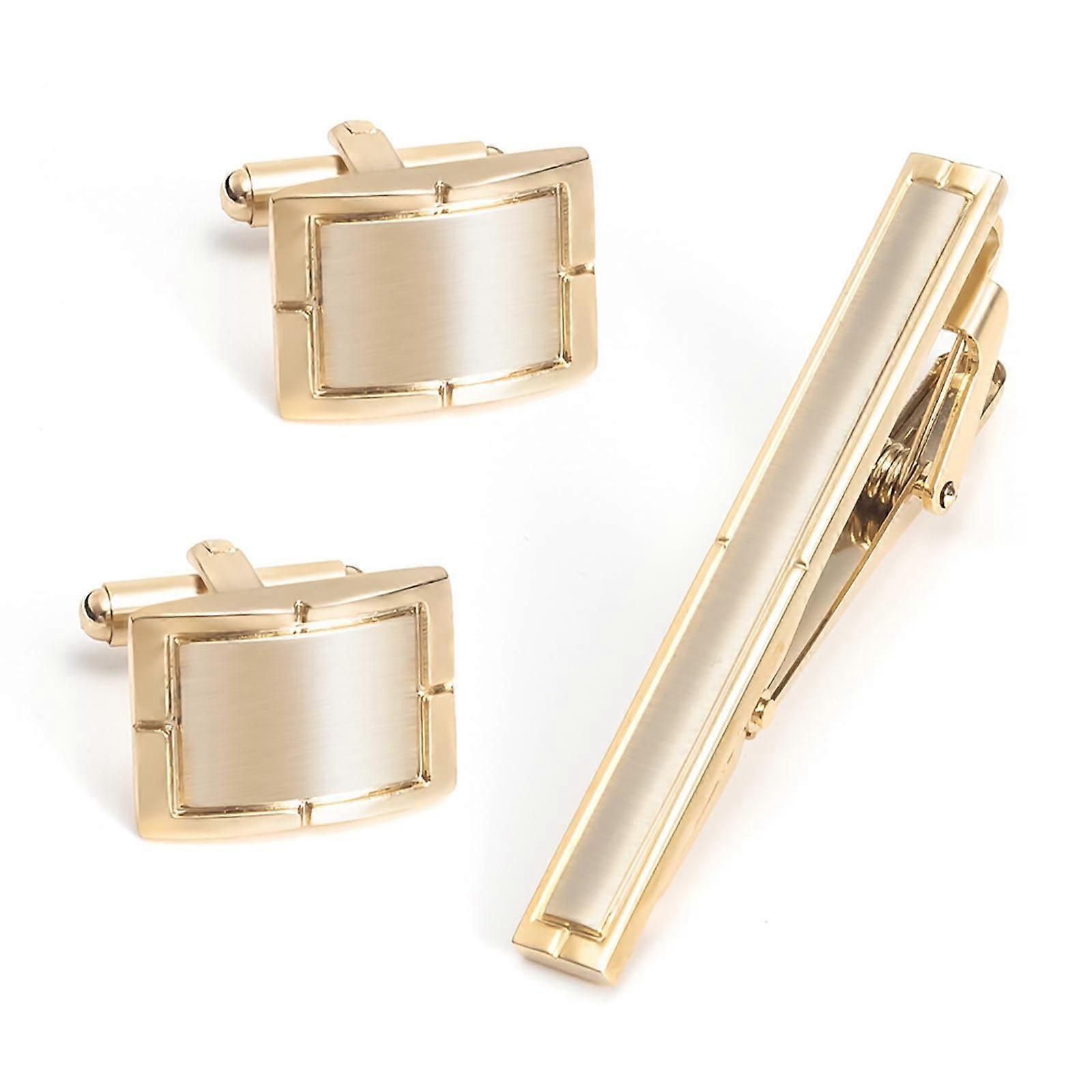 Men's Cufflinks Set Electroplated Brushed Metal Tie Clip Cufflinks Set Gold One Size