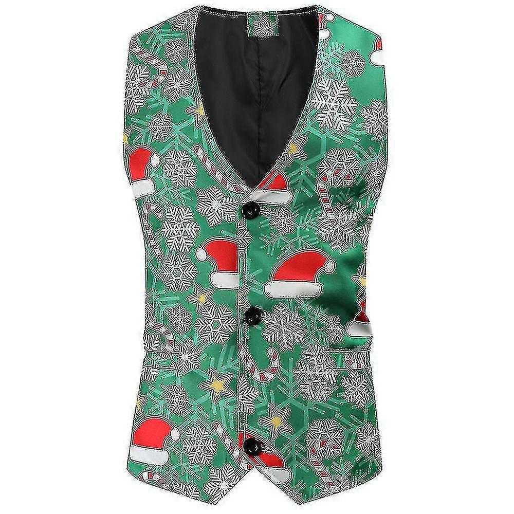Men Christmas Waistcoat Slim Fit Xmas Suit Vest Jacket Casual Outwear