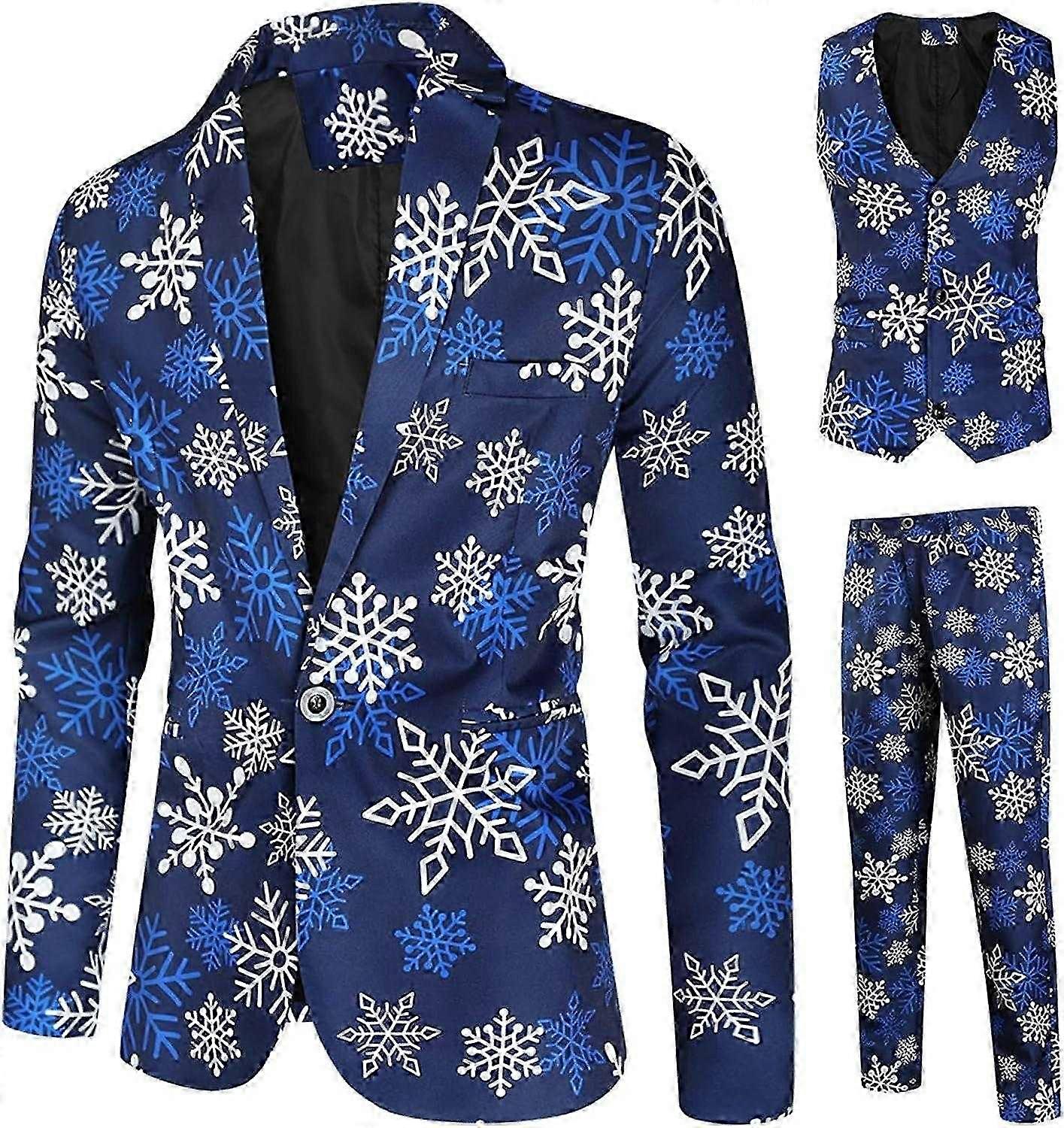 Men's Christmas Suit 3 Piece Slim Fit Suit Set Xmas Holiday Party Suits Blazer Jacket Vests Pants Me