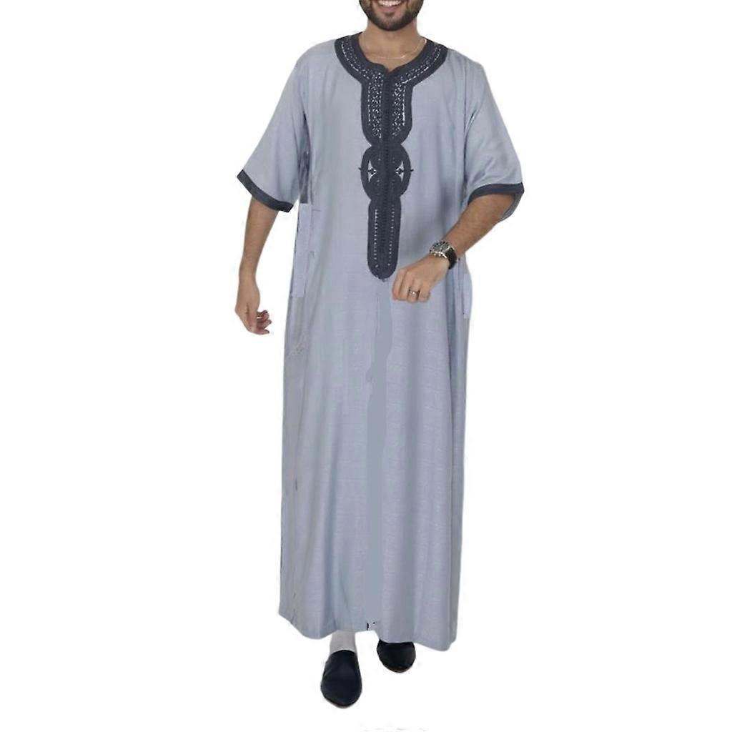 Details: Mens muslim robe with embroidery, loose, crew neck, floor length, straight cut, long sleeve designs. Baggy style suitable to dress in everyday.
