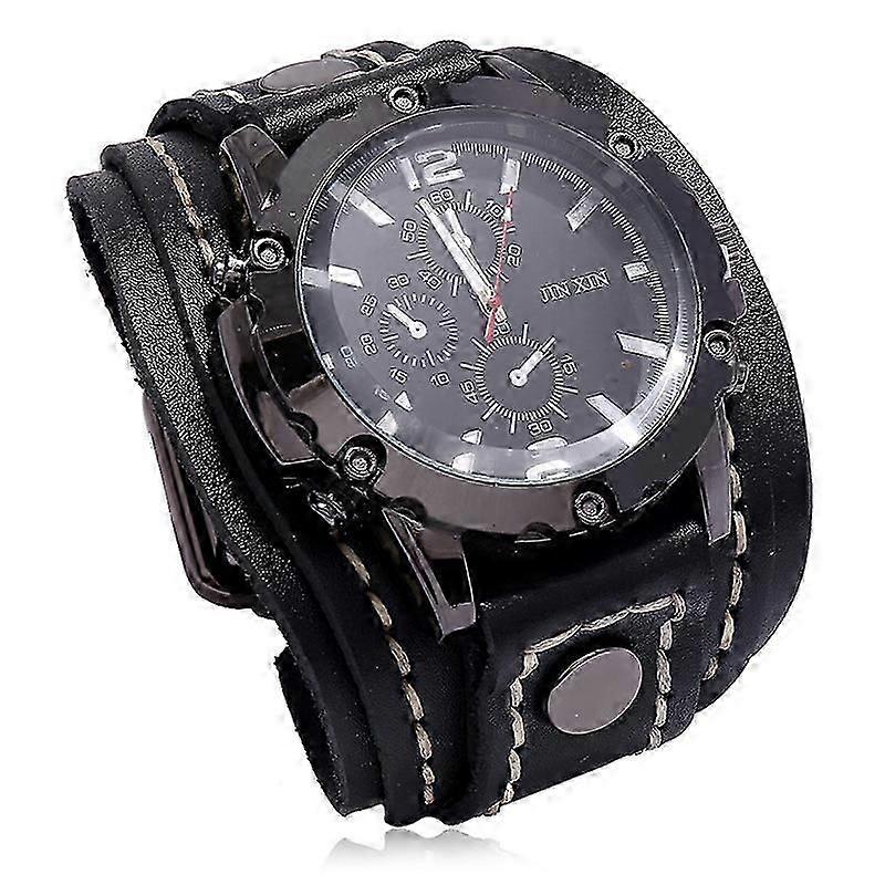 Mens Cool Retro Watches Punk Rock Hip-hop Big Wide Cowhide Bracelet Cuff Wristwatch Gift